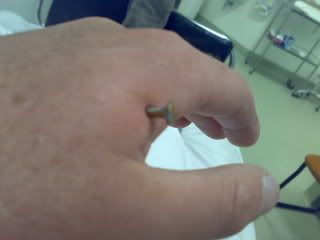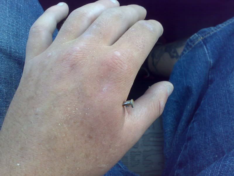 This is why I am always so careful when i use screw/nail guns... Was it painful? The worst work injury I have had is grazed knuckles so not really even close to this. Did you get X-Rays? I love how these days when people really hurt themselves and you grab a camera before the first aid kit....lol
