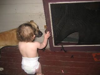Kimba has been okay so far. I think she is loving not being caged up. She is not trained at all but I am taking her to obedience training once a week and shes been quite good with the dogs in her class (puppies lol) She installed herself a doggy door in the fly screen while I was out and chased a cat up a tree that was higher than our 2 story house but other than that she is such a loving happy dog. her doggy door-